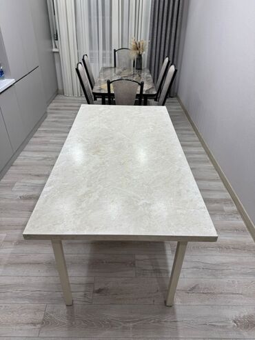 Продаётся стол, б/у Делали на заказ. Столешница из прочного кухонного материала, толстая, надёжная и долговечная. • Размер стола: 175/90/80 см • Цена: 9000 сом • Самовывоз: Анкара 1/13 • Контакт: