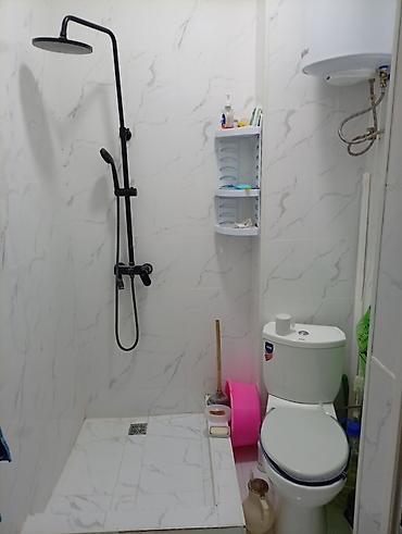 - Современная душевая зона с поддоном, тропическим и ручным душем, стенды под косметику.