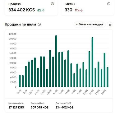 Средняя выручка: 450 000 сом/мес