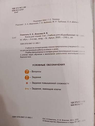 - адабий окуу за 3 класс Б. А. Абдухамидова, С. К. Рысбаев, К. Ибраимова,