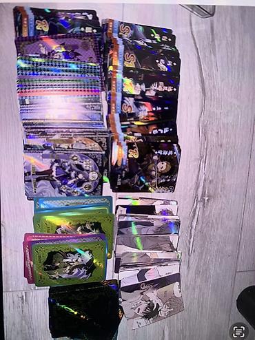 - Большой набор коллекционных карт с аниме‑персонажами: встречаются разные серии и редкости (в т.ч. блестящие/холографические S/SSR и др.).