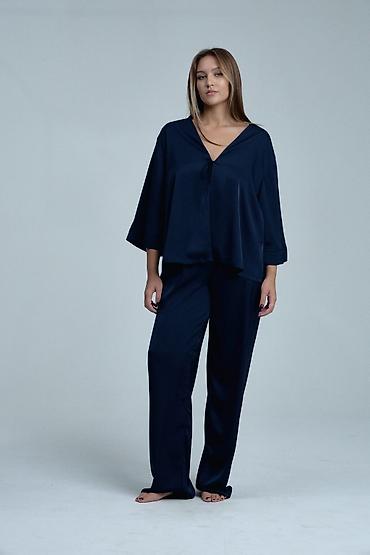 Женская пижама из атласной ткани, комплект из 2 предметов: - Рубашка на пуговицах с отложным воротником и нагрудным карманом - Брюки прямого кроя на мягкой резинке Размер: S-46, M-48, L-50, XL - 5...