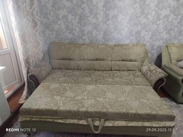 Продаю комплект диванов! диван раскладной, диван поменьше и кресло 5000 сом за всё. В подарок дивандейки(накидки) на каждый предмет. Самовывоз из микрорайона Джал. Состояние хорошее, только на раск...