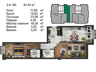 2 комнаты, 80 м², Элитка, 4 этаж, Готовая ПСО (под самоотделку)