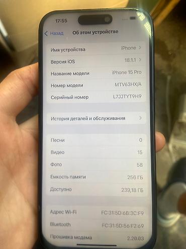 Apple iPhone 15 Pro 512 гб(тихий титан), емкость 87% телефон в хорошем состоянии. Я работаю мобилографом поэтому пришлось купить новый гб побольше.