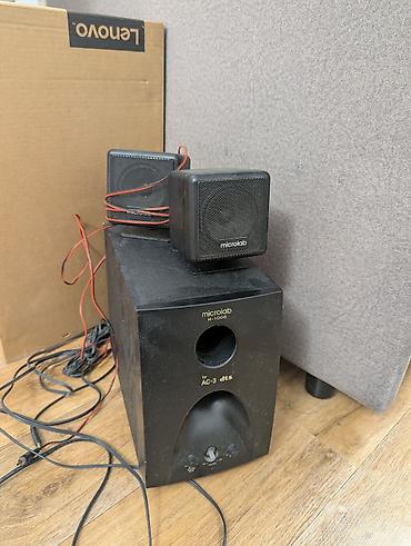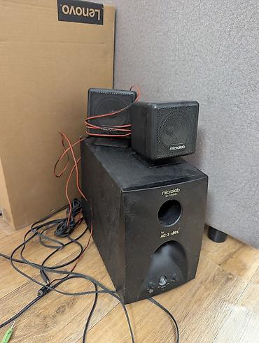 Колонки 2.1 Microlab M-200. Состояние отличное, в пользовании был 4 месяца у компа. Брал в магазине. При покупке тест на месте.