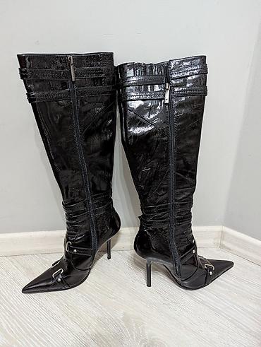 Женские ботильоны на каблуке - Материал: натуральная кожа (гладкая, матовая) - Цвет: черный - Носок: квадратный, с металлической накладкой на мысе - Застежка: боковая молния + декоративный кожаный...