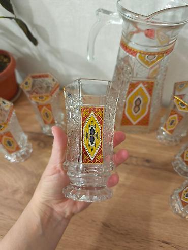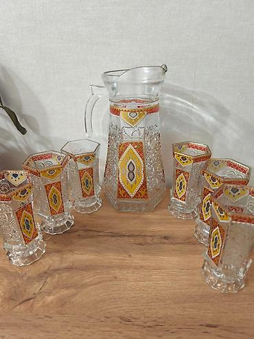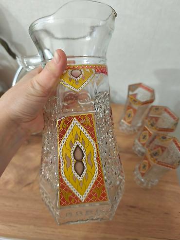 Набор из кувшина и 4бокалов б/у,но в отличном состоянии без сколов и трещин, ещё при союзе покупался