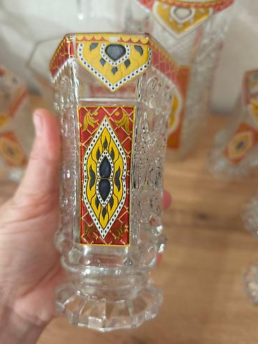 Продам б/у графин и 6 стаканов. На одном стакане на ножке есть скол на фото видно. Объем графина 1.2 объем стаканов 0.100 мл. Писать в whatsapp