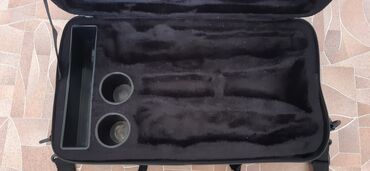 Кларнет в футляре. - Разборная модель с классической системой клавиш (немецкая/бемольная раскладка, серебристая фурнитура). - Материал корпуса — черный (вероятно эбонит/дерево), с расширенным раст...