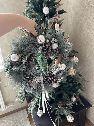 Продам елку вместе с игрушками, гирляндой, и круглым украшением на дверь или стену. Забирайте все вместе комплектом, сможете использовать на праздники в последующих годах.