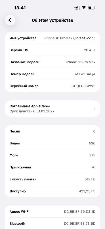 📦 Память: 512 GB (свободно более 420 GB) — огромный запас