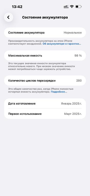 🔋 Аккумулятор: 98% (280 циклов) — отличное состояние, держит заряд уверенно