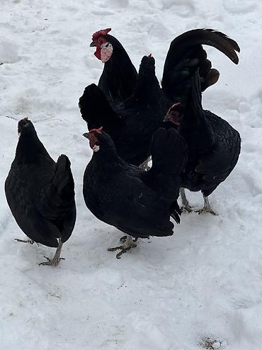 Куры домашние ( парода брама ) и петух - Разведение: приусадебное хозяйство, свободный выгул. - Состав: на фото видно несколько кур разных мастей (включая светлых и пестрых) и крупного петуха. ...