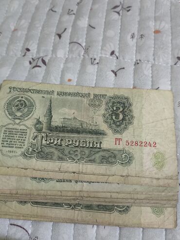 Подборка советских банкнот СССР. Состав: - Купюры номиналом 1 рубль, 3 рубля и 10 рублей (видны типовые дизайны с гербом СССР и надписями «Государственный казначейский билет», «СССР»). - Разные го...