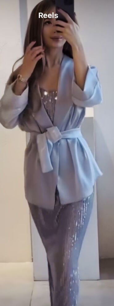 Вечернее платье, новое не ношение, с этикеткой, размер 42-46, на спинке и рукавах вставки из гипюра, цена 1500ом, самовывоз, район Кызыл аскер .