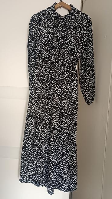 Платье макси с принтами и поясом - Длина: макси - Крой: свободный силуэт с акцентом на талии, съёмный пояс с круглой пряжкой в тон - Верх: стойка-воротник, планка на пуговицах по всей длине - Рука...