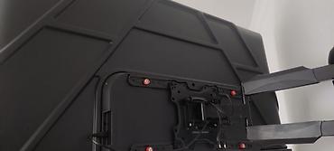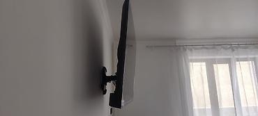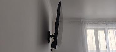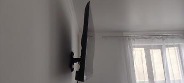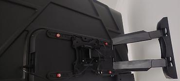 - Установлен на поворотно-выдвижном настенном кронштейне: можно отодвигать от стены и наклонять/поворачивать для удобного угла просмотра.