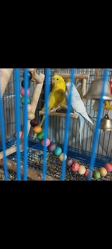 Продам парочку папугаев вмести склеткой поилка кормушки игрушки полный комплект за 2500 активные здоровые полу ручные! находится в Бишкеке Новопокровке.