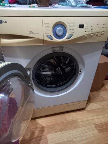 Стиральная машина LG, фронтальная загрузка Характеристики: - Загрузка: 5 кг - Управление: поворотный селектор программ + кнопки - Отжим: выбор скорости до 1000 об/мин (режимы 400/800/1000, без отж...