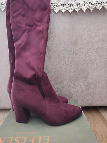 Продам в отличном состоянии, почти новые, обучала 2 раза, высокие сапоги-чулки демисезонные , очень модный цвет марсал, размер 38, высота каблука 7 см.