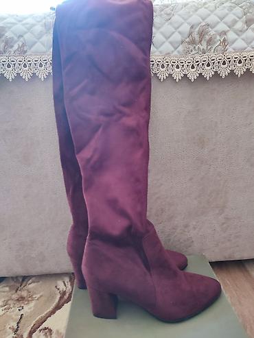 Чёрные сапоги на платформе, с устойчивым каблуком. Новые, в идеальном состоянии. Размер: 37 Подойдут для тонких икр (мне оказались узкими в икрах, поэтому продаю). Цена: 4 500 сом Возможен торг. ...