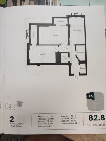 2 комнаты, 85 м², 108 серия, 8 этаж, ПСО (под самоотделку)