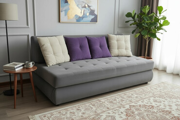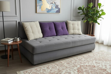 Фиолетовый диван-кровать с подушкой Покупали в 2021г. В магазине Евростиль за 80.000 сом - Тип: прямой диван с механизмом раскладывания «еврокнижка/вперед» (выкатной нижний блок с петлёй-ручкой)...