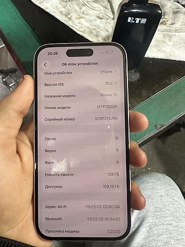 📱 iPhone 15 128GB Black Продаю iPhone 15 в чёрном цвете. Телефон в хорошем состоянии, полностью рабочий 🔹 Память: 128 ГБ 🔹 Цвет: Black 🔹 iOS: 26.3 🔹 АКБ 🔋78% 🔹 Циклов : 1139 🔹 Face ID, True Tone,...