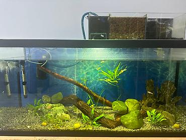 Продается аквариум в комплекте с рыбками 4500сом: длина 55 см; высота