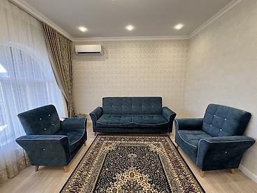 Продается в г. Каракол мягкая мебель б/у - диван и 2 кресла турецкая, раскладывается, каркас металлический. В отличном состоянии, дивандеки и пуфик в подарок