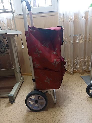 Продаю бу хозяйственную сумку - тележку на колесах, в отличном состоянии , внутри сумка обшита дерматином , колеса на подшипниках , пользовались мало. Уступка не более 200 сом .До 40 кг.