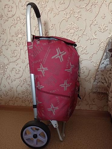 Продаю бу хозяйственную сумку - тележку на колесах, в отличном состоянии , внутри сумка обшита дерматином , колеса на подшипниках , пользовались мало. Уступка не более 200 сом .До 40 кг.