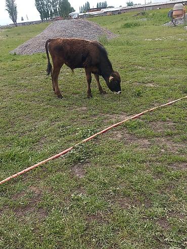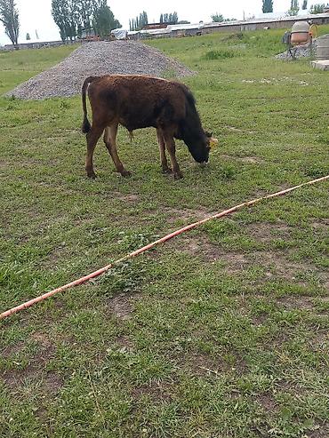 1- туут эки тиш 8 ай бооз бойу 145/147 жоош денег ичкени жакшы. жакшы уйдун тукуму - Возраст: молодой бычок (по фото — не теленок, сформирован корпус). - Окрас: сплошной черный. - Уши с бирками дл...