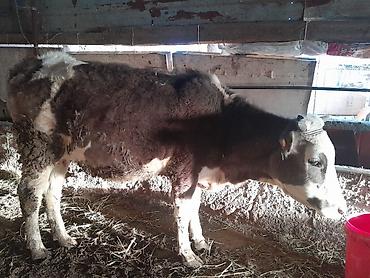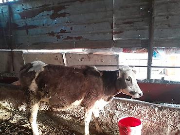 - Порода: помесь мясо-молочного направления (окраска пёстрая: тёмно-коричневый с белыми отметинами).