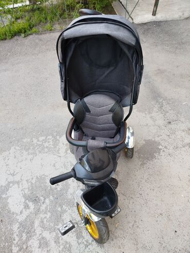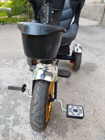 Детский велосипед с дополнительными боковыми колёсами - Диаметр колёс: около 14" (по пропорциям на фото). - Рама компактная, заниженная — удобно садиться и слезать. - Передняя металлическая корзин...
