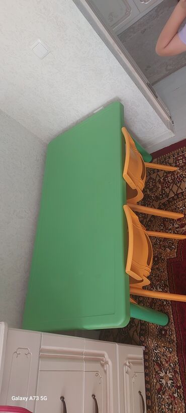 Детский столик квадратной формы. СТОЛ 1900 СОМ,СТУЛ 250 СОМ - Материал: ЛДСП/МДФ с ламинированным покрытием. - Цвет: ярко‑зелёный (светло‑салатовый) с темной кромкой по периметру столешницы. - Сто...