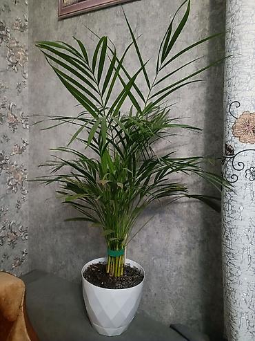 Крупное комнатное растение — пальма (предположительно ховея/кентия) в