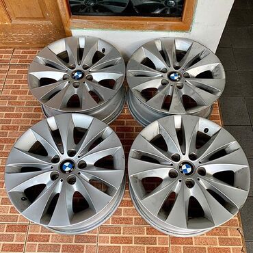 Комплект из 4 литых дисков BMW. - Диаметр: ориентировочно R17–R18 (пятиспицевые, фирменные колпачки с эмблемой BMW) - Посадочные отверстия: 5 болтов (5x?) — под большинство моделей BMW с 5-луночно...