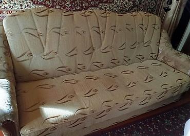 Продается диван с двумя креслами Деревянный каркас Раскладывается в хорошем состоянии Цена 4000 Бишкек самовывоз