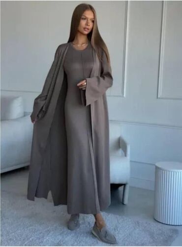 Повседневное платье, Турция, Осень-весна, Длинная модель, Трикотаж, Лапша, S, M