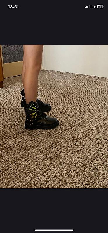 Продаю эксклюзивные ботинки. Таких в Бишкеке ни у кого нет 100%. Привезены на заказ. Брала за 100$. Размер 24/25. С утеплением. Пару выходов.