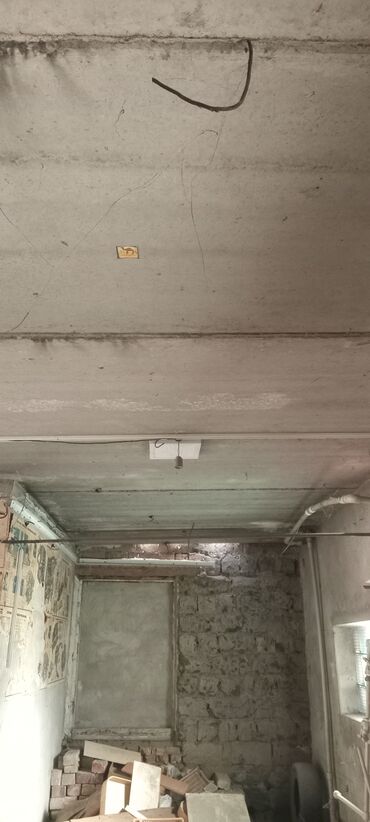 - Бетонный пол, стены частично оштукатурены; есть полка/ниша над оконным проемом.