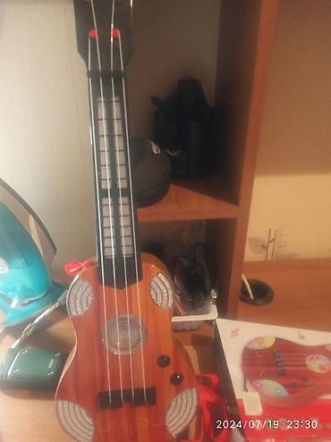 Продаю гитару игрушку на батарейке,батарейки пальчиковые,состояние хорошее ,никаких царапин трещин,практически не играли, мелодии три вида ,покупали за 680с