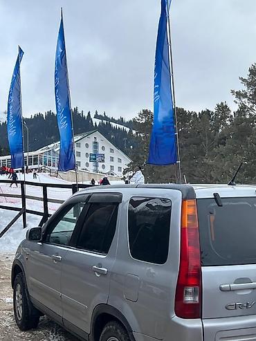 Honda CR‑V II (рестайлинг), серебристый кроссовер 5‑дверный. Кузов и экстерьер: - Цвет: серебристый металлик - Литые диски - Рейлинги на крыше - Запасное колесо на задней двери с окрашенным жестки...