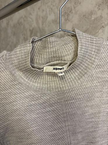 Модель: Свободный свитер (оверсайз) с объемным воротом и спущенной линией плеча.
