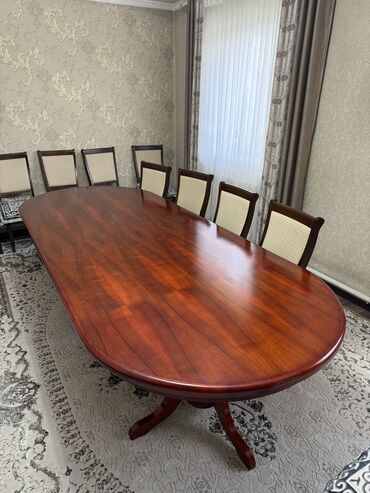 Продаю стол со стульями. Стол: карагач, длина 4м, ширина 1,20м. Стулья 16 штук.