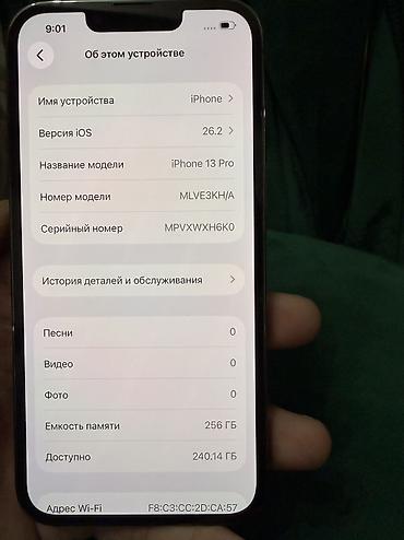 Срочно!!! IPhone 13 Pro 256гб Акб 100% цвет Graphite Состояние 10/10 По корпусу идеал Меняла дисплей под ориг за 6000 сом И акб за 4000 сом Все работает и Фейс айди и трутон Единственное после...