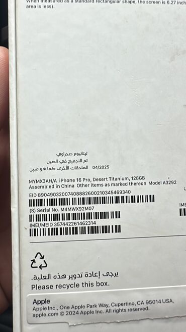 IPhone 16 Pro • Память: 256 ГБ • Состояние: как на фото, в остальном идеальное • Не вскрывался • Работает полностью, без нареканий • Зарегистрирован • Батарея: 100%, 112 циклов • Комплектаци...