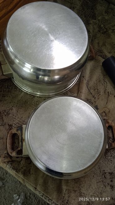 Продаю 3 кастрюли (емкости). 1)кастрюли - 2шт - 8 л - 3 000 сом/шт. 2)кастрюля - 50 л - толстостенная, дюралюминиевая - 7000 сом